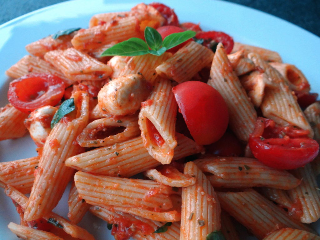Tags: Abendessen, Basilikum, Grillparty, italienisch, Käse, Mittagessen, Mozzarella, Pasta, Pesto Rosso, Salat, Tomaten