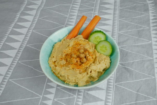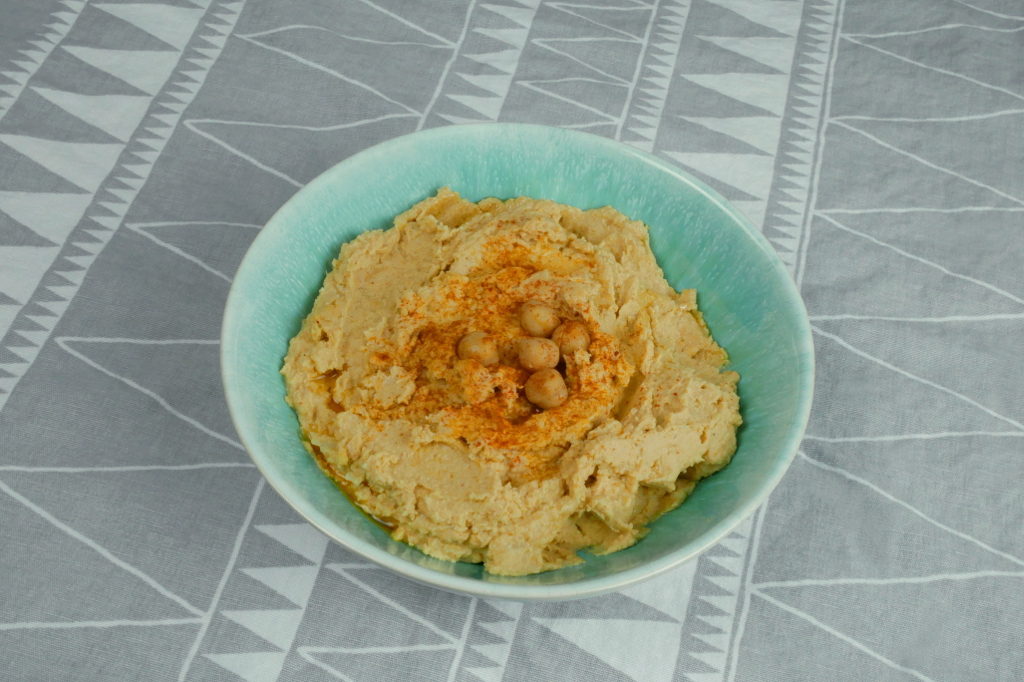 Hummus ist eine orientalische Spezialität und bedeutet «Kichererbse». Deshalb ist es keine grosse Überraschung, dass Hummus zum grössten Teil aus pürierten Kichererbsen besteht. Zusätzlich dazu, wird Hummus traditionellerweise mit Sesampaste (Tahini), Zitronensaft, Olivenöl und Knoblauch zubereitet. Das leckere Kichererbsenmus wird gewöhnlich mit anderen sogenannten Mezze (kleine Speisen) als Vorspeise serviert und als Dip mit Fladenbrot gegessen. Zum Hummus empfehle ich euch neben Fladenbrot verschiedene Gemüsesorten wie Karotten, Gurken oder Peperoni.